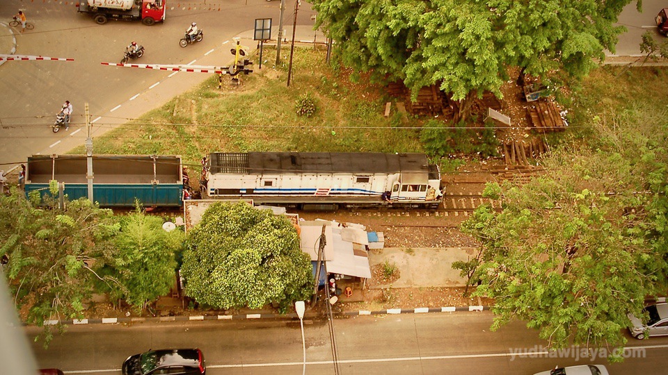 Pelintasan sebidang Palmerah sesaat sebelum dilewati kereta api.