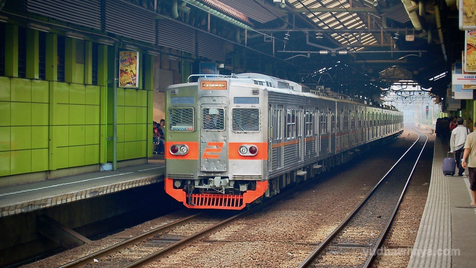 Kereta api kelas ekonomi menuju Stasiun Kebayoran.